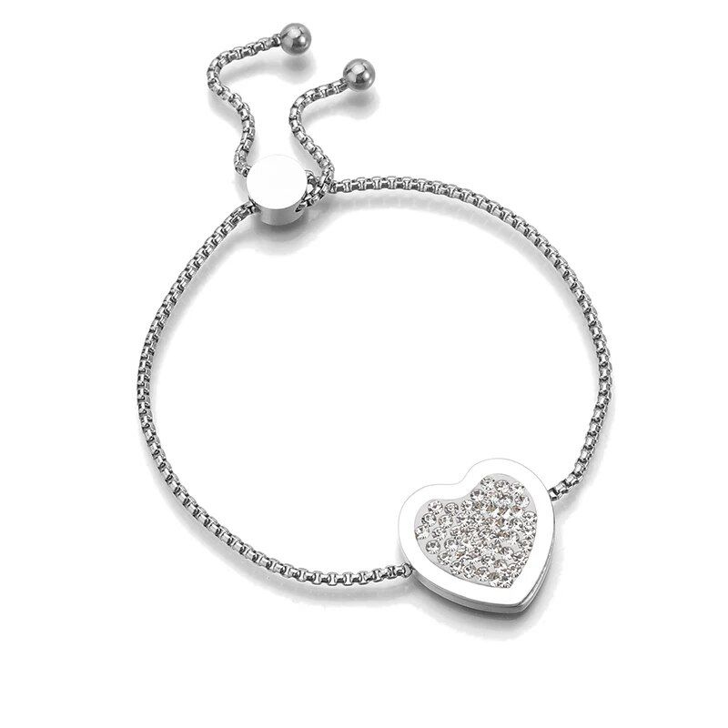 What makes this bracelet special is not just its beautiful design but also its practicality and quality. The innovative adjustable chain eliminates the need for a traditional clasp, making it easy to wear while ensuring a secure fit. Crafted with care from stainless steel and enhanced with CZ stones, this bracelet is designed to be a long-lasting symbol of love and elegance.