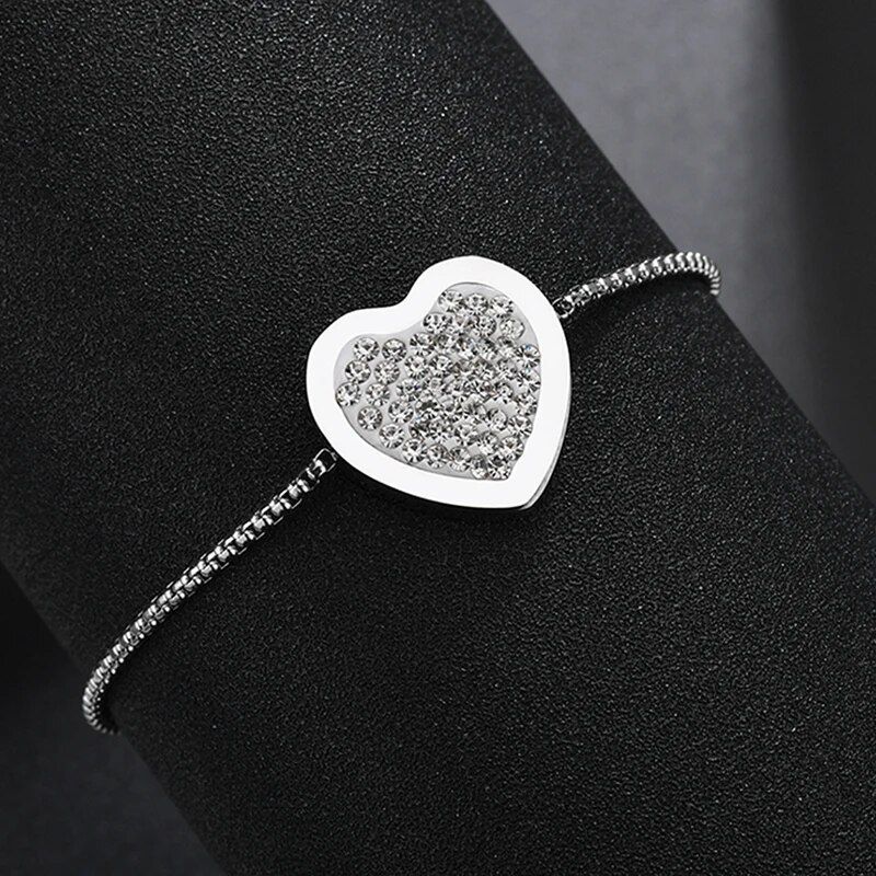 This bracelet is more than a piece of jewelry; it’s a declaration of love and a testament to the wearer’s refined taste. Its elegant heart design, complemented by the luster of stainless steel and the brilliance of CZ stones, makes it a remarkable accessory that carries a wealth of meaning. The adjustable design not only ensures a comfortable fit but also makes it a versatile choice for any occasion.