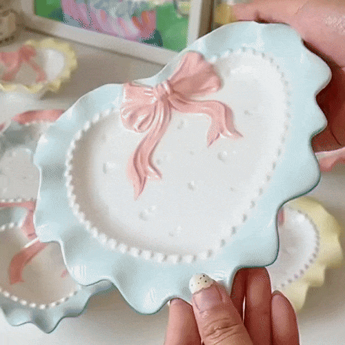 Aside from its practicality, what sets this tray apart is its unique design. The love bow motif and wavy edges are not just decorative; they symbolize care, affection, and attention to detail. The choice of uplifting colors makes it a lively addition to any room, brightening spaces and moods alike. Its ceramic craftsmanship ensures durability, making it a cherished part of your home for years to come.