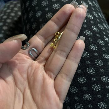 This ring is the ideal size—delicately thin and small. It boasts great quality with metal that doesn't cause skin discoloration, a shine that doesn't lose its luster, and remarkable resistance to bending despite its delicate nature. It's simply stunning. I love it so much that I'm considering ordering another one as a backup in case I ever misplace this one.
