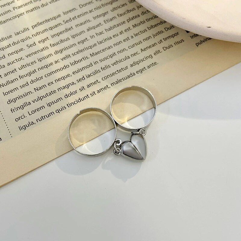 Introducing our Magnetic Heart Couple Rings Set, a fashionable and meaningful way to express your bond with that special someone or your closest friend. Crafted from high-quality zinc alloy and designed with a trendy silver finish, these rings are not just jewelry; they’re a pledge of affection, suitable for every occasion.
