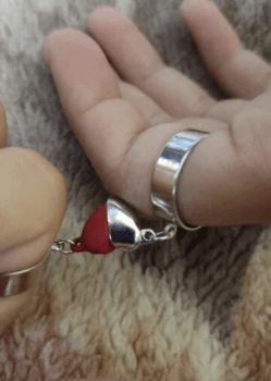 The rings' magnetic halves attract each other strongly. They have made a child very happy.